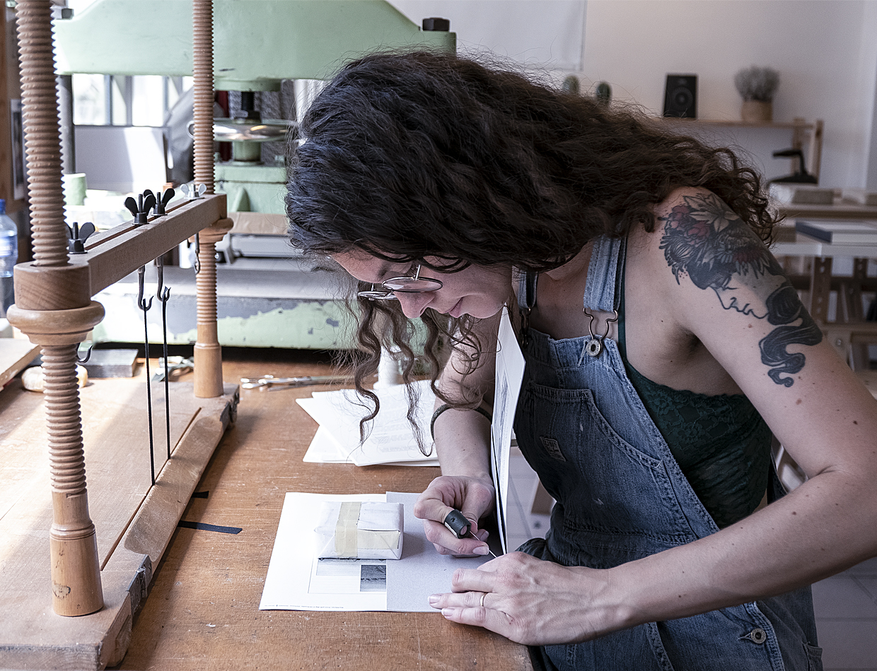 Pour terminer votre livre, vous aurez l’opportunité d’explorer la typographie en composant un titre à la main à partir d’une sélection de polices de caractère, que vous imprimerez vous-même avec du foil argent ou or.
