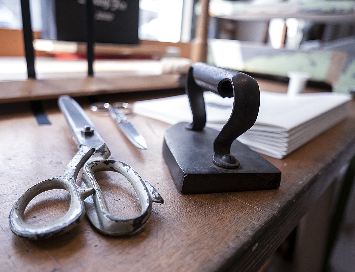 Entrez dans l’univers de Tessa Wymann, alias Tess, et Michelle Roux, alias Mitch. Ce binôme féminin est à la tête de l’atelier de reliure artisanale Les Relieuses en plein cœur de Vevey. Associées mais aussi et surtout amies depuis l’enfance, ces deux femmes pleines de spontanéité vous accueillent avec bonne humeur dans leur bel et spacieux atelier depuis bientôt 10 ans. En 2011, elles ont fait le pari de reprendre les locaux d’un Relieur parti à la retraite et ont ajouté au fil des années leur touche personnelle. Si vous avez un bon sens de l’observation, partez par exemple à la recherche d’une statuette de femme-musclor qui trône fièrement sur un massicot.